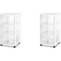 Amazon Com Sterilite 3 Drawer Storage Cart Plastic Rolling Cart With Wheels To Organize Clothes In Bedroom Closet White With Clear Drawers 2 Pack Sterilite Home Kitchen